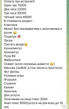 Можешь перед встречей написать о своих пожелания... Может ты хочешь строгую учительницу? Или развратнаю мед сестру?) а может... Покорную горничную? Или властную начальницу?) Я буду для тебя той, о ком ты так долго мечтал...